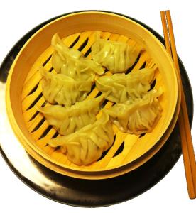 Det är väldigt enkelt att ångkoka. Du kan använda en bamboo steamer eller aluminium steamer. Eller ta samma saker som du använder för att ångkoka klibbris. Det går också bra att ångkoka i en stekpanna med lock. Lägg då dumplings på ett fat på en upp-och-nervänd tallrik i en stekpanna med vatten.