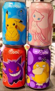 Nyhet! Vi har fått uppfriskande drycker med kolsyrat vatten i olika smaker med Pokémonmotiv.