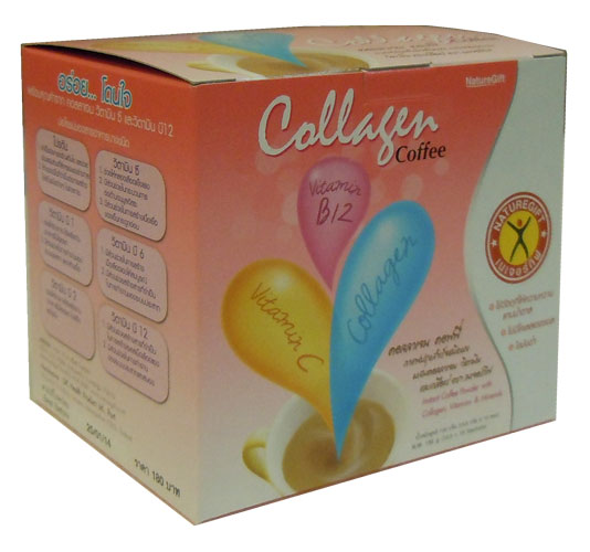 Ingredienser: gräddersättningsmedel för kaffe (glukossirap, palmolja, mjölkprotein, E340, E471, E551, smak), snabbkaffepulver 17%, fiskkollagen 11%, oligofruktos (cikoria), sötningsmedel E950, E951, kalciumfosfat, vitamin B1, vitamin B2, vitamin B3, vitamin B6, vitamin B5, ferridifosfat, tri zinkcitrat, manganglycerofofat, chromiumpicolinate. Innehåller aspartam (en källa till fenylalanin).