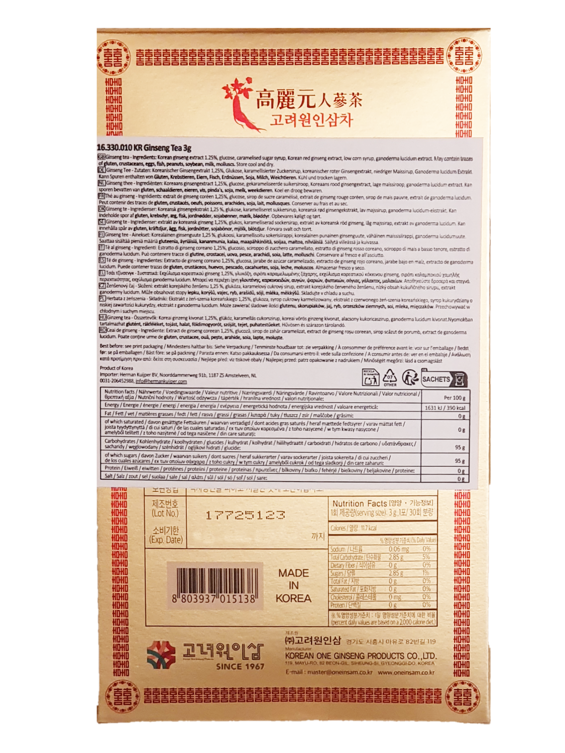 Ginseng te från Sydkorea. Förpackningens innehåll: 30 st